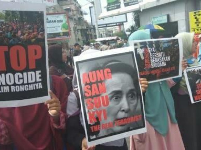 "Suu Kyi sebagai pemenang Hadiah Perdamaian Nobel nampaknya tuli dan tidak melakukan apapun untuk melindungi warganya," tulisnya.