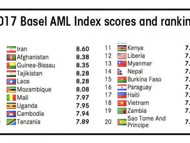 Itu diikuti oleh Afghanistan, Guinea-Bissau, Tajikistan dan Laos dalam peringkat tahunan yang disusun oleh Basel Institute on Governance, sebuah kelompok anti-korupsi independen yang berbasis di Swiss.