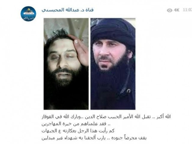 HAMA, SURIAH (voa-islam.com) - Seorang komandan mujahidin Chechnya yang terkenal di Suriah, Salahuddin Shishani, telah terbunuh di desa Hama di Suriah barat laut. Mantan kelompoknya telah merilis sebuah pernyataan yang mengkonfirmasi tentang kematiannya. Selain itu, jihadis lain di media sosial telah memposting foto dari yang dilapokan sebagai jenazahnya. Selain itu, dua tokoh jihadis berpengaruh di Suriah, ulama Saudi Syaikh Abdullah al Muhaysini dan Syaikh Abdul Razzaq al Mahdi, juga telah memuji dan menyampaikan ucapan bela sungkawa terhadap Shalahuddin Shishani di media sosial.