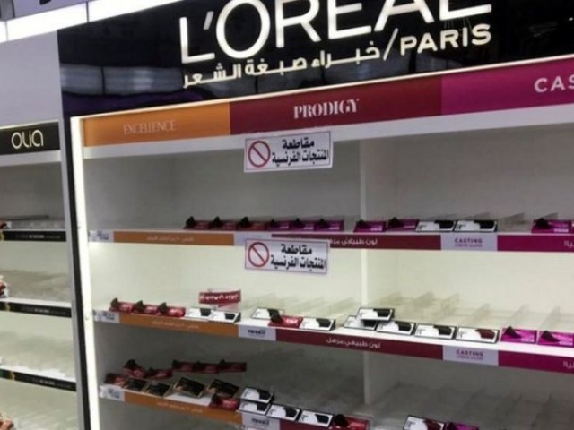 Beberapa rak supermarket telah dikosongkan dari produk Prancis di Yordania, Qatar dan Kuwait pada hari Ahad. Barang-barang kecantikan dan rambut buatan Prancis, misalnya, tidak dipajang.