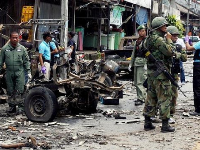 Ledakan juga merusak sebuah kendaraan Humvee militer yang sedang mengangkut tentara Thailand ke lokasi ledakan pertama.