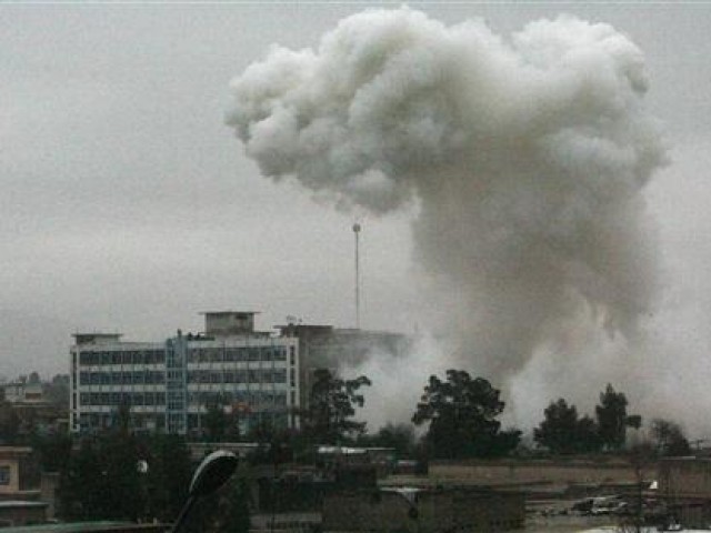 Serangan itu berlangsung selama beberapa jam ketika pria bersenjata melepaskan tembakan dari jendela sebuah aula pernikahan di dekatnya dan tiga pelaku bom jihad meledakkan diri. Sebuah bom mobil meledak di dekat perimeter kompleks polisi, koalisi yang dipimpin NATO mengatakan.
