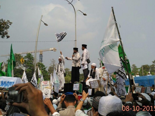 Aksi damai ini sempat membuat decak kagum lantaran pasca acara demonstrasi digelar para peserta aksi demo melangsungkan shalat berjamaah Jalan Raya Ahmad Yani, didepan Kantor Walikota Bekasi dan Stadion Patriot Bekasi. [adivammar/voa-islam.com]