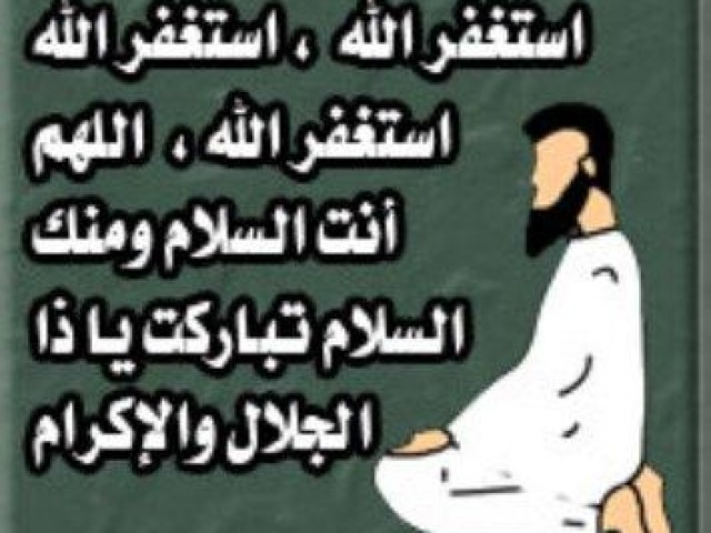 أَسْتَغْفِرُ اللَّهَ ، أَسْتَغْفِرُ اللَّهَ، أَسْتَغْفِرُ اللَّهَ، اللَّهُمَّ أَنْتَ السَّلَامُ وَمِنْك السَّلَامُ ، تَبَارَكْت يَا ذَا الْجَلَالِ وَالْإِكْرَامِ