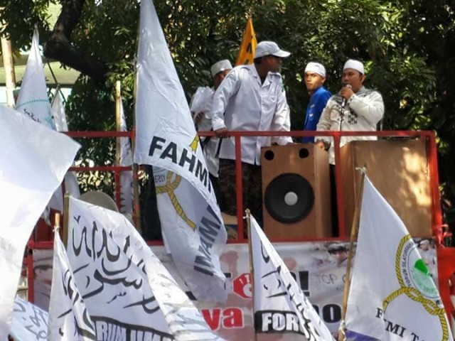 JAKARTA (voa-islam.com) - Rabu siang tadi (27/5) ratusan Umat Islam dari Forum Umat Islam (FUI), Majelis Mujahidin Indonesia (MMI) dan Front Pembela Islam hadir dalam aksi demonstasi dan orasi di Bunderan HI yang berlanjut ke kediaman Kedutaan Besar Myanmar di Jalan Agus Salim, Jakarta Pusat.