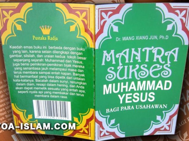 Alih-alih meredakan ketegangan antara dunia Islam dan Kristen, Dr Wang Xiang Jun PhD menulis buku “Mantra Sukses Muhammad dan Yesus Bagi Para Usahawan.” Dalam pengantar buku saku 74 halaman tersebut, Xiang Jun memaralelkan sabda nabi kedua agama untuk membuka hati dan pikiran kedua belah pihak demi perdamaian dan stabilitas global.