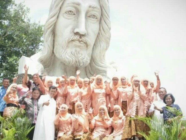 YOGYAKARTA (voa-islam.com)--Beredar di media sosial gambar ibu-ibu pengajian yang berselfie bersama pendeta dengan background patung kepala Yesus.  Foto tersebut beredar cukup luas dan menjadi viral.