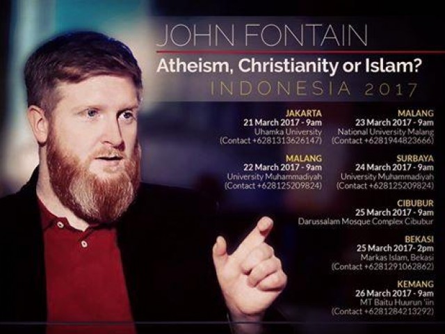 Latar belakang John sebagai mantan pemeluk Kristen, membuatnya terpanggil untuk memberikan ceramah umum bertajuk: Atheism, Christianity or Islam? Ia melakukan road show di Indonesia mulai dari Jakarta, Malang, Surabaya dan beberapa kota lainnya di Indonesia.