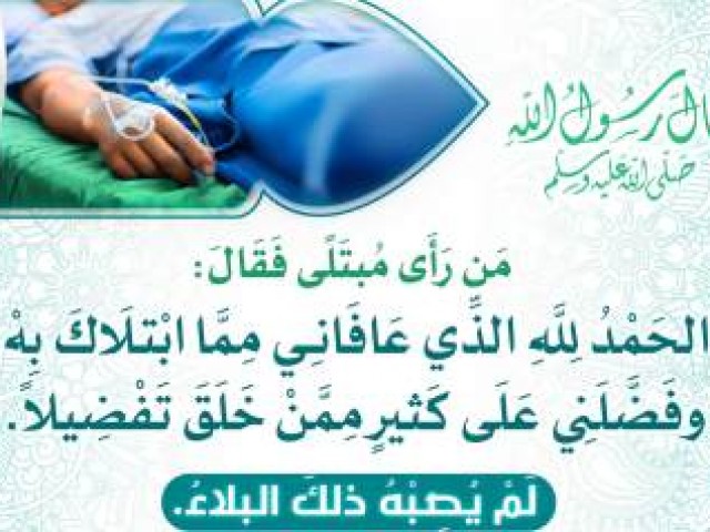 مَنْ رَأَى مُبْتَلًى فَقَالَ: الحَمْدُ للهِ الَّذِي عَافَانِي مِمَّا ابْتَلَاكَ بِهِ وَفَضَّلَنِي عَلَى كَثِيرٍ مِمَّنْ خَلَقَ تَفْضِيلًا لَمْ يُصِبْهُ ذَلِكَ الْبَلَاءُ