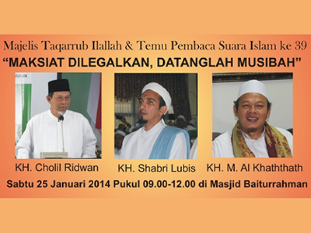 Bersama ini kami mengundang Bapak/Ibu/Sdr/i untuk menghadiri acara MTI-TPSI Ke-39 bertema “MAKSIAT DILEGALKAN, DATANGLAH MUSIBAH" yang insya Allah akan diselenggarakan pada: