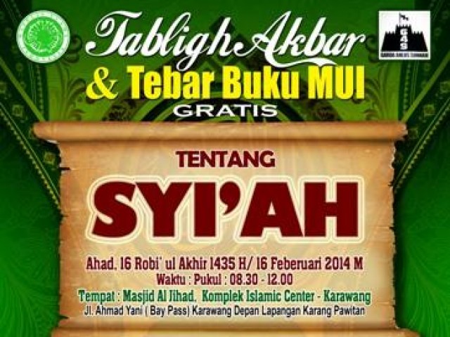 Hadirilah Tabligh Akbar dan Tebar Buku Gratis tentang SYIAH, pada:
