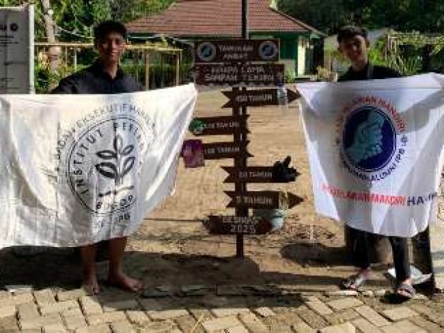 Peserta Ekspedisi IPB – Ekspedisi Nasional 2025 juga memasang papan informasi dan edukasi mengenai pentingnya menjaga kebersihan lingkungan serta pengelolaan sampah yang baik.
