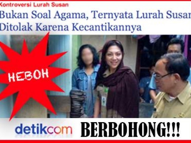 JAKARTA (voa-islam) Detik.com kamis (03/10) mengabarkan berita bohong dengan menyatakan bahwa penolakan Lurah Lenteng Agung disebabkan karena faktor kecantikannya, bukan masalah Agama.