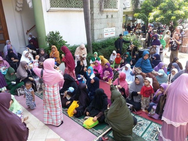BEKASI (voa-islam.com) - Majelis Ta’lim Ibu-ibu Masjid Ramadhan Taman Galaxy Bekasi Rabu pagi (23/4) terpaksa melaksanakan ta’lim di emperan parkiran. Ini akibat buntut kisruh pengambilalihan DKM Masjid Ramadhan oleh Pemkot Bekasi beberapa waktu lalu. Ketua DKM Masjid Ramadhan yang baru Dr. H. Sukandar Gozali, tidak mengijinkan program kegiatan dari DKM yang lama terus berjalan, termasuk kegiatan ta’lim ibu-ibu berlangsung di dalam Masjid.