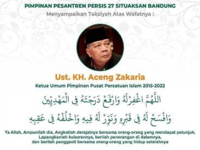 Kita doakan semoga KH Aceng Zakaria diterima segala amal ibadahnya, diampuni segala kesalahannya, dan semoga organisasi Persis mampu merumuskan dan melaksanakan model Pendidikan yang dapat melahirkan semakin banyak ulama-ulama hebat seperti KH Aceng Zakaria. -Allahummaghfirlahu warhamhu wa’fu’anhu-. [PurWD/voa-islam.com]