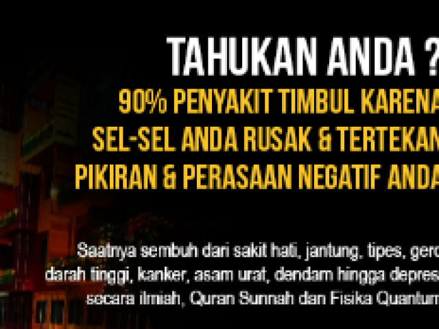 Kini saatnya, Terapi Qalbu Quranic Quantum Healing (QQQ Healing) Masalah Qalbu Anda bisa diatasi hingga tidak meluas menyebabkan 350 jenis penyakit berbahaya.