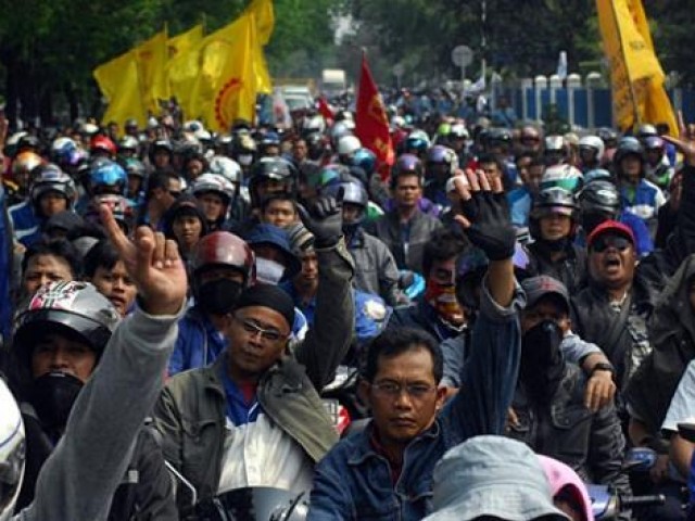 Jakarta (voa-islam.com) Puluhan ribu buruh dari berbagai organisasi serikat buruh di Jakarta dan sekitarnya, menggelar aksi unjuk rasa. Aksi para buruh ini digelar dalam rangka peringatan Hari Buruh Internasional atau lebih dikenal dengan istilah ‘May Day’, Rabu, 1/5/2013.