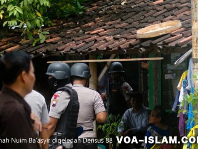 SOLO (voa-islam.com) – Densus 88 Antiteror Mabes Polri pada Rabu (15/5/2013) melakukan penggeledahan dan olah Tempat Kejadian Perkara (TKP) di rumah Qomasu Nuawiyah Arob Ba’asyir alias Nuim, aktivis Islam yang diduga teroris di kampung Padangan, kelurahan Joyotakan Rt 03 Rw 04, kecamatan Serengan, Solo, Jawa Tengah.