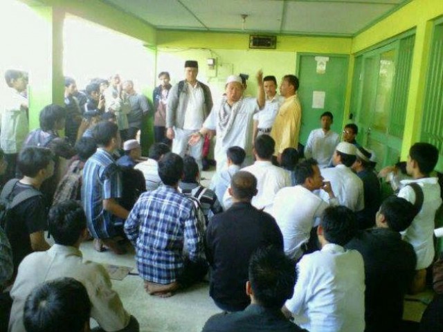 BOGOR (voa-islam.com) – Sejak pagi hari, Sabtu (15/6), pukul 07.00 kurang, massa LDII sudah memenuhi Masjid Al Hijri Universitas Ibnu Khaldun, sambil berteriak-teriak dengan suara gaduh. Sejak malam pihak panitia memang sudah mendapat ancaman dari LDII.