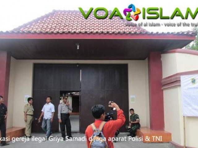 KLATEN (voa-islam.com) – Setelah ratusan warga muslim Jogonalan yang didampingi gabungan elemen Islam Klaten yang terdiri dari FPI, FUI, MMI, KOKAM Muhammadiyah, JAT, MTA dan FKAM melakukan demo di kantor Pemda Klaten pada Rabu (26/6/2013) siang, akhirnya gereja ilegal Griya Samadi disegel Satpol PP Klaten.