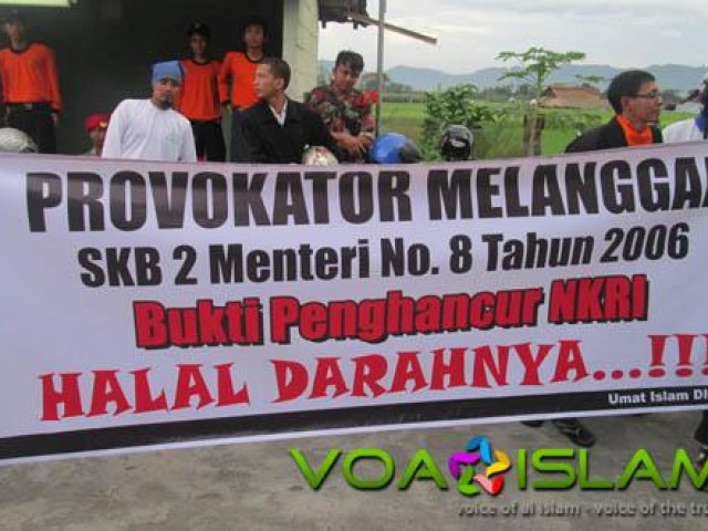 “Perlu diketahui, Menhan ini beragama Katolik. Kita tidak peduli meskipun dia seorang Menteri. Jika melanggar SKB 2 Menteri tentang pendirian tempat ibadah, maka kita lawan. Kristen adalah agama penjajah negeri ini, maka sudah sepatasnnya kita melawan agama penjajah. Kita tidak mau desa (Rejoso –red) ini juga dijajah,” imbuhnya.