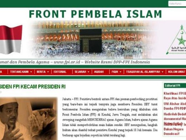 Terakhir hingga pukul 14.11 WIB, situs FPI yang beralamat www.fpi .or.id masih mengalami gangguan yang ada hanya beberapa kalimat dengan background tampilan putih.