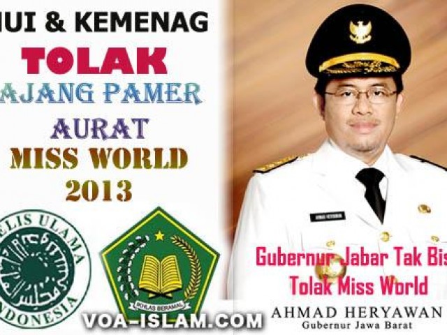 BANDUNG (voa-islam.com) – Mayoritas masyarakat, tokoh bangsa dan elemen umat Islam sudah secara tegas menolak rencana gelaran Miss World yang akan diadakan di Indonesia, baik secara lisan maupun tertulis.