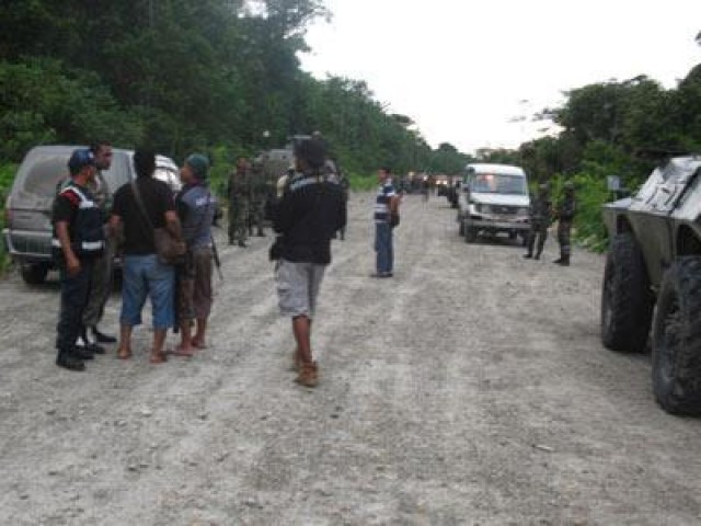 Hari Senin (9/12/2013) gerombolan bersenjata juga menembaki sebuah mobil milik PT Kuala Pelabuhan Indonesia di Mile 41.