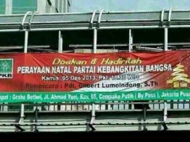 BEKASI (voa-islam.com) – Praktek Pluralisme agama di Indonesia semakin liar, menjelang akhir bulan Desember tampak sejumlah Spanduk dari partai yang berbasis Massa muslim ikut menyelenggarakan natalan.