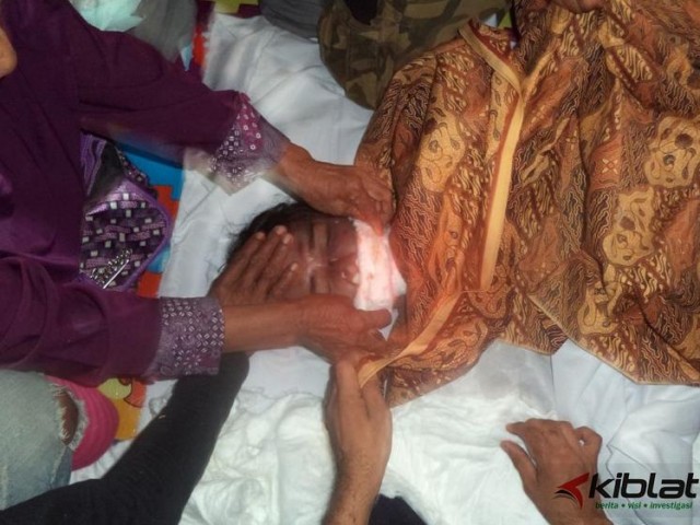 Setibanya di rumah, sekira pukul 21.00 waktu setempat, jenazah disholatkan di masjid tanpa dimandikan.