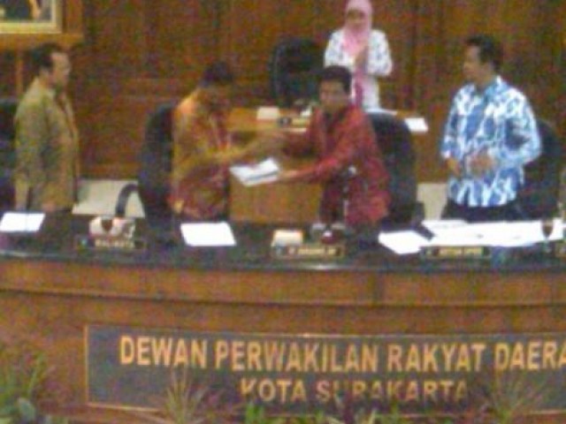 Pejabat hadir dalam Sidang paripurna ini adalah Walikota FX hadi Rudyatmo, Wawali Ahmad Purnomo, Ketua DPRD FY. Sukasno, Wakil Ketua DPRD Supriyanto dan M. Rodhi