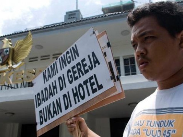 BEKASI (voa-islam.com) - Di mana-mana orang Kristen dan Katolik, tak mau mentaati SKB Tiga Menteri, yang mengatur tata-cara pendirian rumah ibadah. Mereka merasa sangat terkekang dengan adanya aturan SKB Tiga Menteri itu, dan dianggap SKB itu, melanggar kebebasan beragama. Bahkan, Indonesia pemerintah SBY dilaporkan kepada Komisi Hak Asasi Internasional PBB, karena dianggap gagal melindungi kaum minoritas.