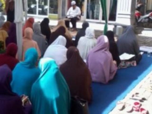 Ibu Santi, pengurus Majelis Ta’lim ibu-ibu menegaskan, “Ini keadaan darurat, kegiatan ta’lim harus terus berlangsung, menuntut ilmu jangan sampai terputus hanya oleh keadaan tempat. Kita ini ta’lim niatnya tulus semata mencari ilmu berlandaskan Qur’an dan Sunnah. Tidak ada niat macam-macam. Kalau biasanya kita ta’lim di dalam Masjid, sekali ini kita ta’lim di luar Masjid, nggak apa-apa ya ibu-ibu”, ujar Ibu Santi terbata-bata melihat suasana ta’lim yang sangat mengharukan, Rabu (23/04/2014) lalu.