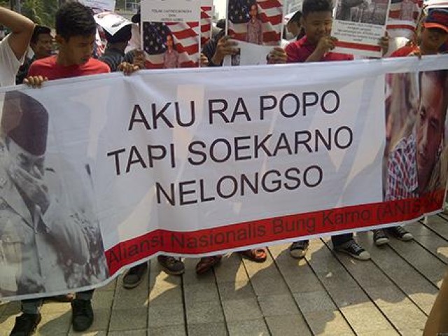 Dalam aksi damai bertajuk 'Bung Karno pun Marah Kepada Jokowi' ini, mereka menyatakan tak akan rela membiarkan siapa pun yang ingin menyimpangkan, menyelewengkan, merusak dan mencemari ajaran politik Bung Karno.