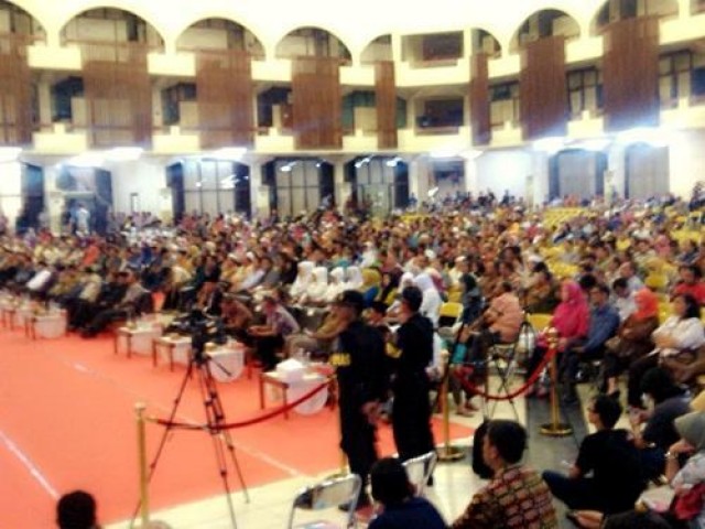 Pantauan beritajatim.com gedung Islamic Center dipenuhi tamu undangan yang menyaksikan peresmian deklarasi surabaya bebas prostitusi. Sementara untuk keperluan pengamanan, Polrestabes Surabaya mengerahkan 1.411 personel, serta sejumlah kendaraan taktis (rantis) sudah terlihat di lokasi seperti mobil water canon maupun truk pengangkut personel dan mobil patroli di sekitar area Gedung Islamic Center. [Beritajatim/abdullah/voa-islam.com]