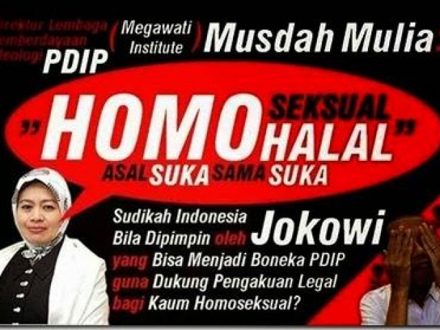 Musdah juga menghalalkan kaum 'gay' hidp di Indonesia. Tentu, yang menarik keuntungan Yahudi dan Nasrani yang menjadi tulang punggung Jokowi. Dibawah Jokowi hanya akan membawa kekacauan kehidupan negara. Semuanya hanya menguntungkan golongan Yahudi dan antek-anteknya. (jj/dbs/voa-islam.com