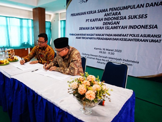 Penandatangan perjanjian kerjasama dilakukan oleh Ustaz Avid Solihin selaku Sekretaris Umum Dewan Da’wah Islamiyah Indonesia, dan Rocky Susanto selaku Presiden PT Kaffah Indonesia Sukses disaksikan oleh Nur Syamsudin Bukhori selaku Komisioner Badan Wakaf Indonesia.