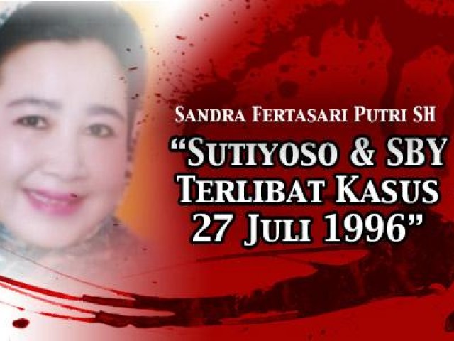 Kepada Voa-Islam.Com, Kamis (3/7), salah seorang korban tragedi 27 Juli yang sempat ditahan selama 5 bulan di LP Pondok Bambu, Jakarta, Sandra Fertasari Putri SH menegaskan mantan Pangdam dan Kasdam Jaya, Sutiyoso dan SBY, terlibat secara langsung dalam tragedi yang menelan puluhan korban jiwa dan luka-luka berat para kader PDI pendukung Megawati tersebut.