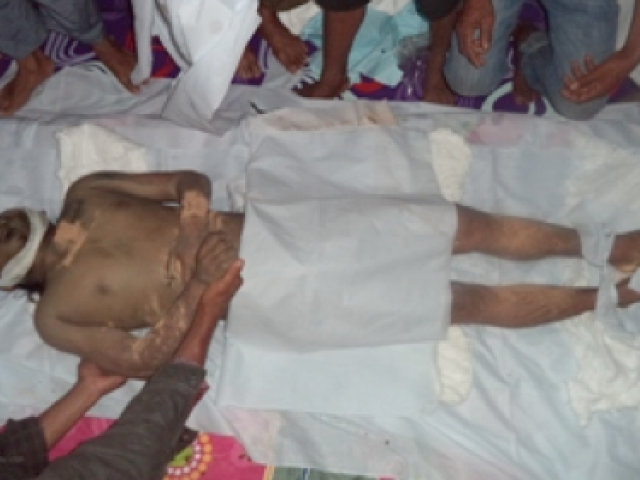 Jenazah tiba dirumah duka dengan menggunakan ambulan Rumah Sakit Mataram.Jenazah langsung disambut oleh keluarga dan warga dengan gema takbir saat dimasukan dalam rumah, saat peti jenazah dan kafan dibuka tampak muka korban membengkak dengan lebam kehitaman yang diduga disiram dengan air keras, dan masih tampak dari mulut serta telinga masih mengeluarkan darah segar, serta tampak luka jahitan pada pelipis kanan, dahi, dan mata kiri yang diduga kuat tembusan peluru yang ditembakan dari arah belakang pada saat korban sedang sujud saat sholat, menurut keterangan Siti Hajar (ibu korban) beberapa jam setelah penembakan (20 September 2014) beliau melihat percikan darah dilantai dan tembok bagian bawah serta ceceran otak dan serpihan tulang kepala yang berserahkan dilantai didalam kamar tempat Nurdin sholat. Sementara anggota badan yang lain seperti badan, tangan dan kaki masih tampak normal seperti orang yang tidur pulas tanpa ada ada lebam mayat dan kaku mayat. |