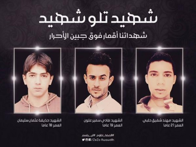 Tiga pemuda lainnya ditembak pasukan Zionis-Israel, selama bentrokan dan dibawa ke rumah sakit Thabit Thabit dirawat, karena luka mereka. Bentrokan terus berlangsung sampai hari ini. Tak ada lagi berhenti melawan Zionis-Israel.