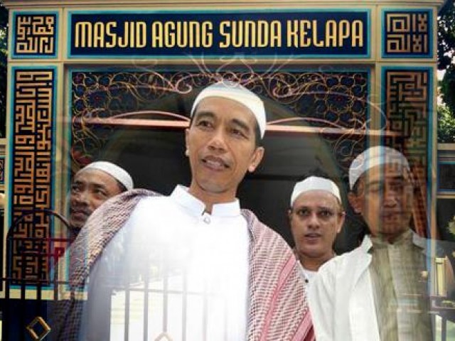 Jokowi duduk di baris syaf pertama. Persis dekat mihrab. Ketika khatib naik mimbar, ia memegang dagu, dua bola matanya bergerak ke arah khatib. Di samping Jokowi ada Aksa Mahmud (adik Ipar Jusuf Kalla; Cawapres Jokowi). Aksa ketua ta’mir masjid Sunda Kelapa. Tak mengerti apa kahidaran Jokowi itu atas undangan Aksa.