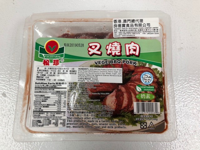 Salah satunya yang membuat konsumen muslim ragu akan kehalalannya adalah produk daging babi vegetarian. Di pasaran, produk ini beredar dalam bentuk Vege BBQ Pork, Vegetarian Roast Pork, Vegetarian Pulled Pork, Vege Beef Ball, dan lain- lain. Prinsip dasar pengolahan daging babi vegetarian adalah protein nabati seperti kedelai atau protein gandum diolah dengan teknologi ekstrusi sehingga dihasilkan protein yang secara tekstur dan sifat fungsionalnya mirip dengan daging babi.