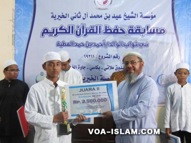Untuk menjalin ukhuwah islamiyah dan memotivasi thalibul ilmu dalam rangka memperbanyak dai menghafal Al-Qur'an, digelar Musabaqah Hifzhul Quran se-Jawa di Islamic Centre Al-Islam Bekasi Jawa Barat, Kamis, (28/3/2013). Hajatan besar ini digelar oleh Yayasan Sheikh Eid bin Mohammad Ali Tsani bekerja sama dengan Yayasan Ash-Shilah Jakarta dan Yayasan Al-Islam Bekasi.
