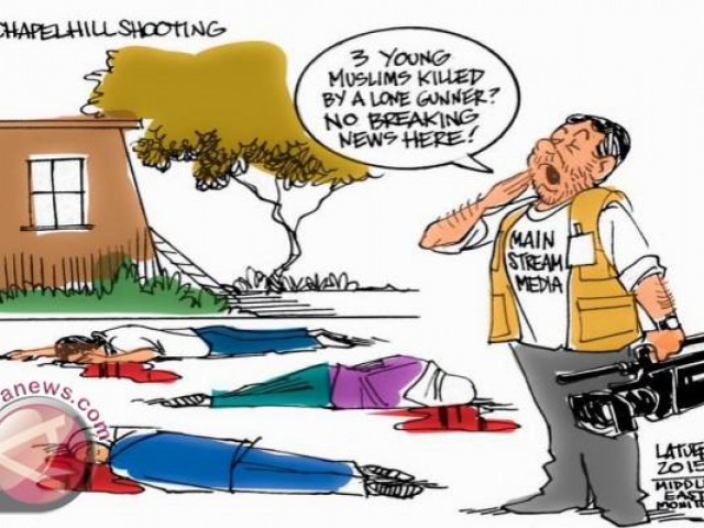 Kritik terhadap lambannya media mewartakan apa yang terjadi di Chapel Hill seakan menciptakan ketimpangan, "Kalau pembunuhnya Muslim, itu teror namanya: Tapi kalau korbannya Muslim, ceritanya tidak layak jadi berita," tulis Meryem Esra di akun @thefemaleeagle.