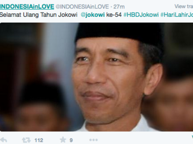 Sontak netizen ramai mengucapkan selamat ulang tahun yang ke-54 tahun untuk Presiden Joko 'Jokowi' Widodo dan heboh dengan keberadaan akun Twitter baru milik Jokowi yaitu @jokowi. Meski tercatat akun ini juga sudah lama dibuat yaitu pada September 2011, namun baru dirilis jelang Ramadhan 2015.