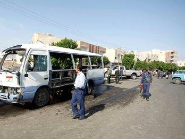 Bus itu sedang melakukan perjalanan di jalan menuju bandara internasional Sanaa, dekat pangkalan, kata seorang pejabat.