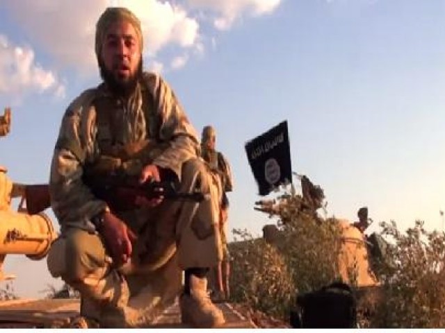 Ket: Mujahidin dari Negara Islam Irak dan Suriah (ISIS) saat memberikan keterangan setelah merebut pangkalan udara Brigade ke-66 rezim Bashar Al-Assad di Provinsi Hama