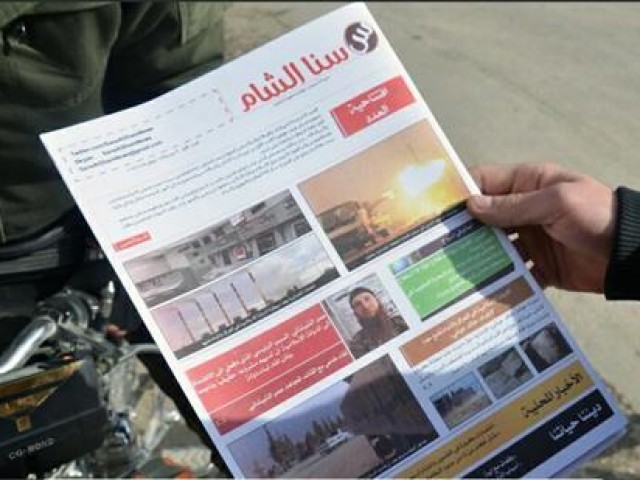 Surat kabar 12 - halaman tersebut sedang didistribusikan di outlet-outlet di tanah di Suriah utara dan bertepatan dengan pembukaan akun Twitter, @ sanaAlShamNews, di mana gambar-gambar distribusi dan laki-laki muda membaca surat kabar yang diposting.
