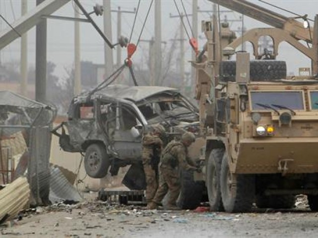 Pemboman hari Jumat di ibu kota Afghanistan itu juga melukai enam orang sipil dan membuat serpihan mobil pelaku serangan tersebut berserakan di lokasi kejadian bersama sejumlah kendaraan lain yang rusak parah, kata beberapa saksi.