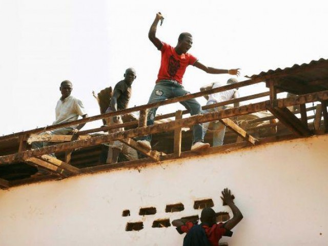 Ket: Massa Kristen saat menghancurkan masjid Gobango di Bangui, Republik Afrika Tengah, Jumat 20 Desember 2013. / Foto. AP